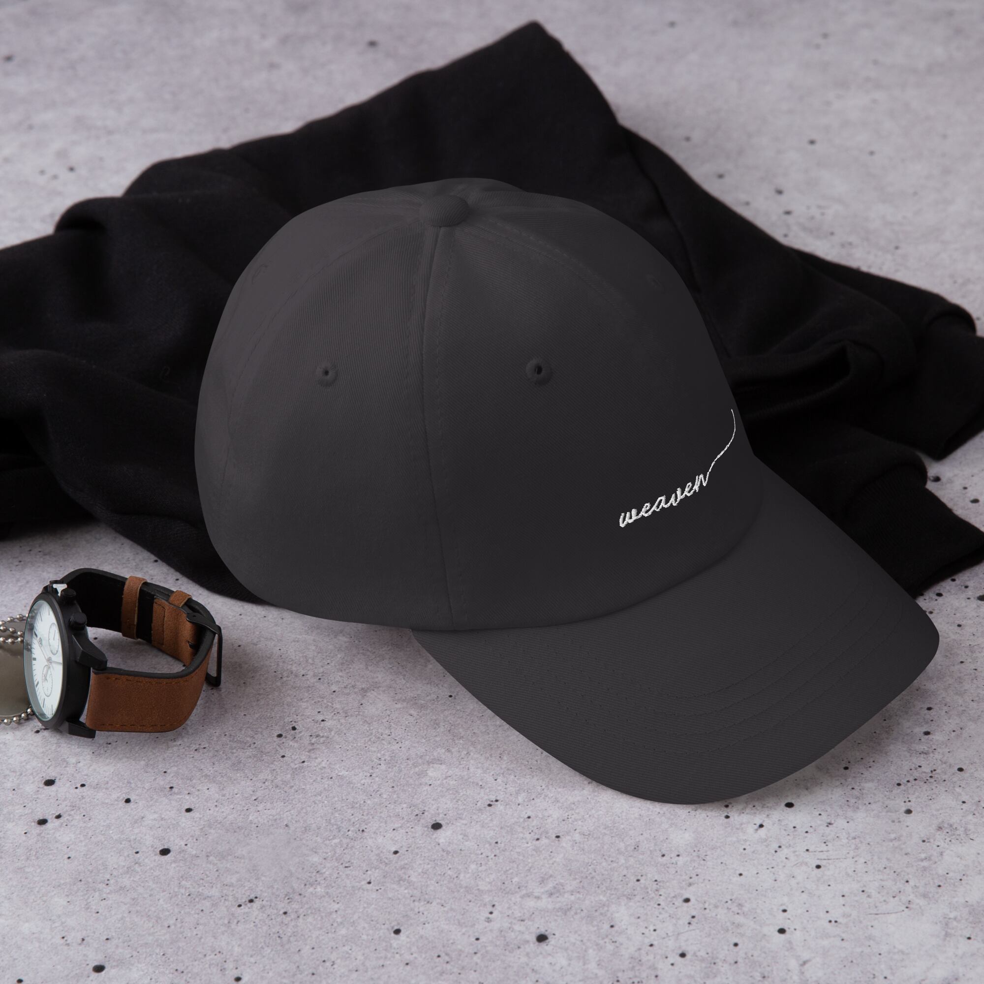 weavenのブランドロゴを刺繍した、シンプルなキャップ